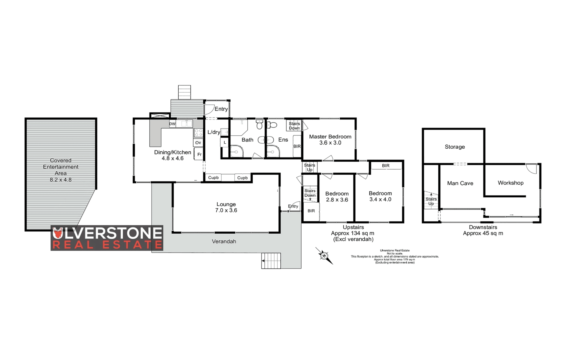 • Down the internal stairs to a man cave, workshop and storage area which can be easily converted back to a double garage.